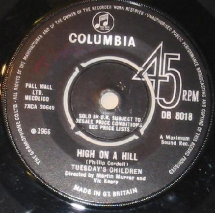 Another song by Phil Cordell, it was also recorded at Maximum Sound Studio. Released by Columbia in October 1966, no. DB8018. The mandolins were recorded on a separate 2 track machine and 'fired in' at the appropriate moment on to the 4 track machine. The B side, also written by Phil Cordell, was entitled 'Summer leaves me with a sigh'. 'High On A Hill' was in the Radio London Fab Forty for 3 weeks reaching the following chart positions: no. 30 on 9th October 1966, no. 24 on 16th October 1966, and no. 36 on 23rd October 1966.